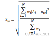 对于由 N 个标量观测值组成的有限长度向量 A 和加权方案 w,加权标准差定义为