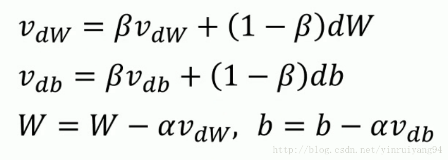 我们可以看出,在这个公式中,并不是直接减去αdW和αdb,而是计算出了一个vdW和vdb。这又是什么呢?