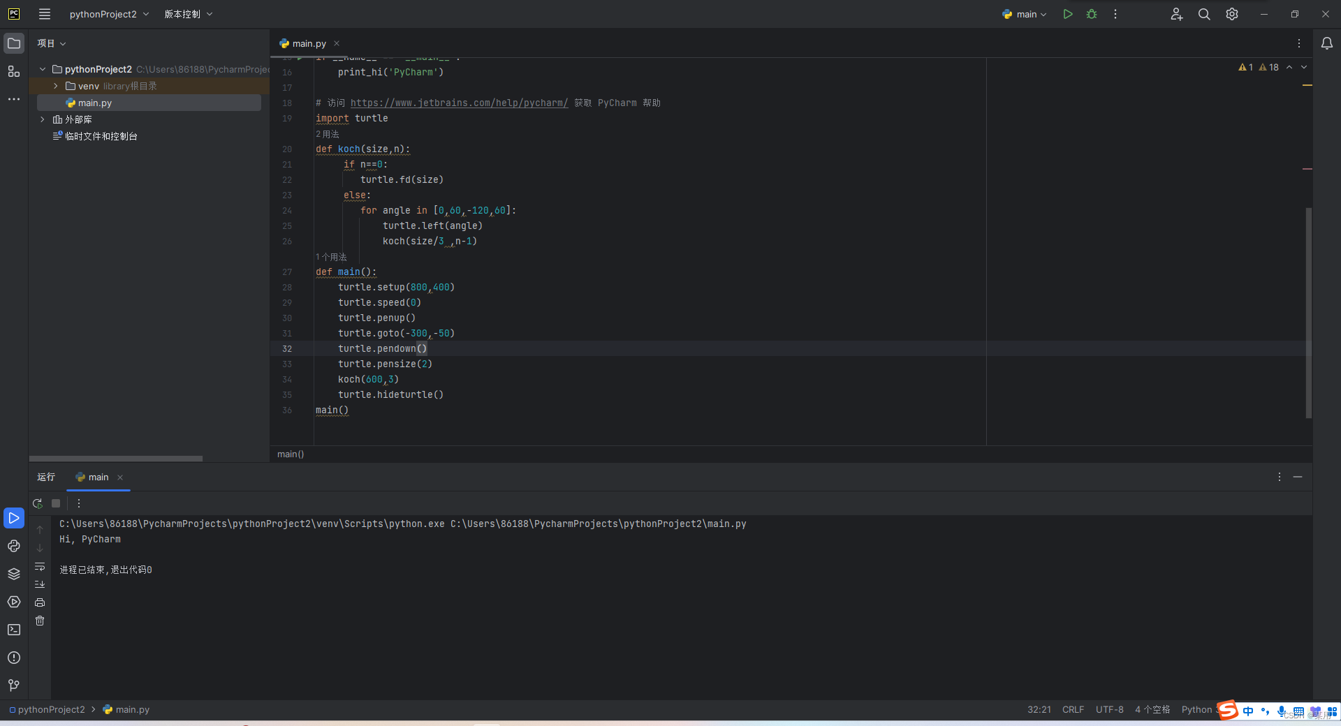 科赫曲线属于分形几何分支,它的绘制过程体现了递归思想,大致绘制过程代码如下:
