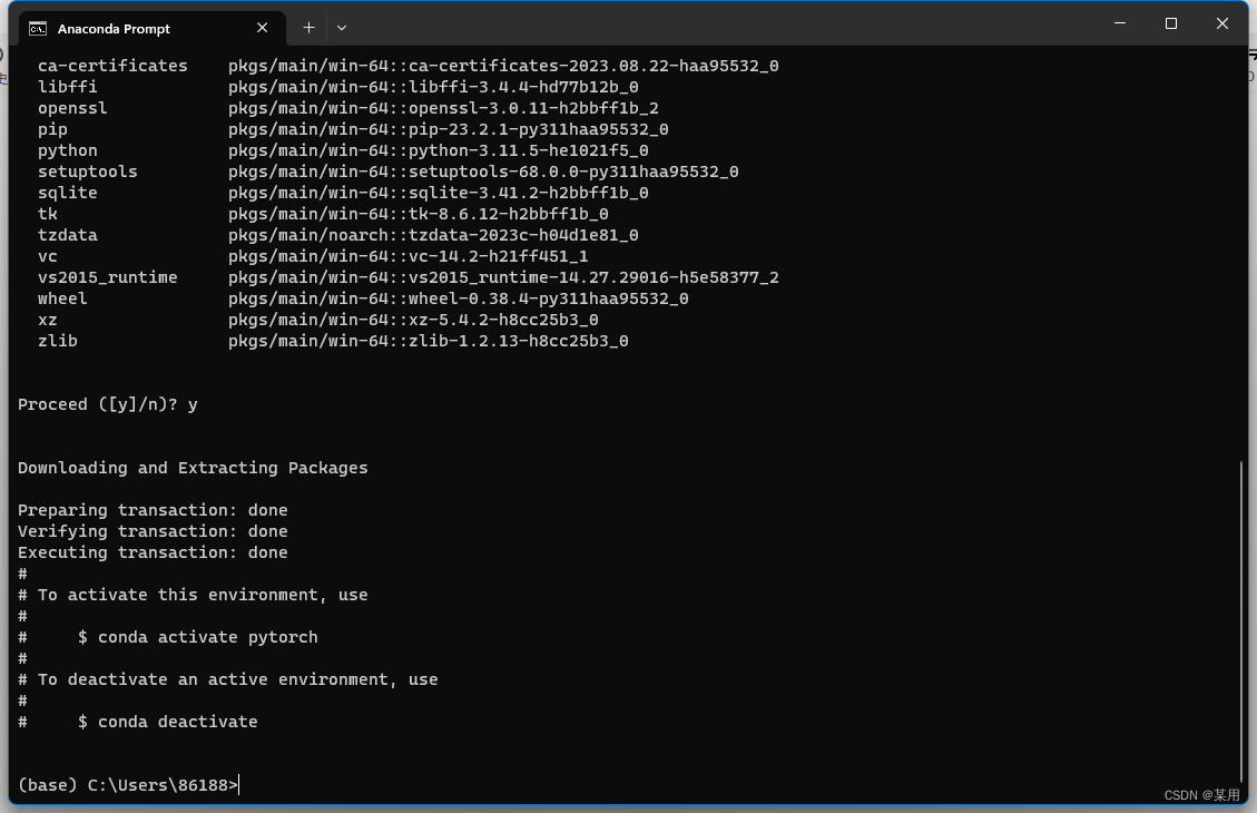 我们配置一下pytorch(注一定要有base才是对的哦)