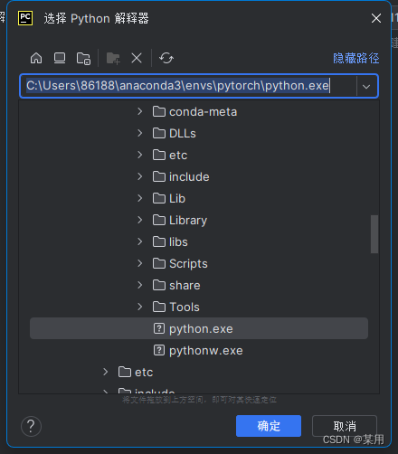 在这里文件找到anaconda3/envs/pytorch/python.exe