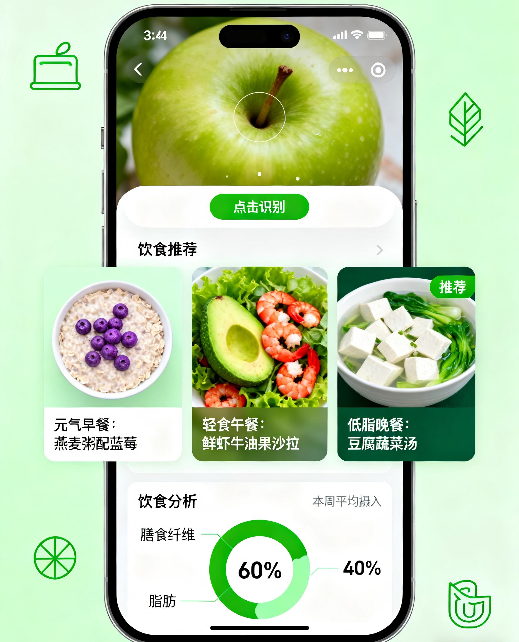 健康有益作为专注于ai健康领域的服务商,通过深度融合多模态识别、大语言模型交互与个性化推荐算法,为消费电子行业提供切实可行的饮食健康解决方案。例如,在赋能华为、荣耀等头部智能手机品牌时,将AI饮食识别技术集成于相机应用,用户只需拍摄餐食照片,即可快速识别食物成分并估算营养数据;在此基础上,其AI智能配餐引擎会结合用户的健康档案与饮食记录,生成后续的饮食调整建议或个性化食谱,形成“记录-分析-干预-反馈”的完整闭环,让智能终端真正成为用户的饮食健康助手。