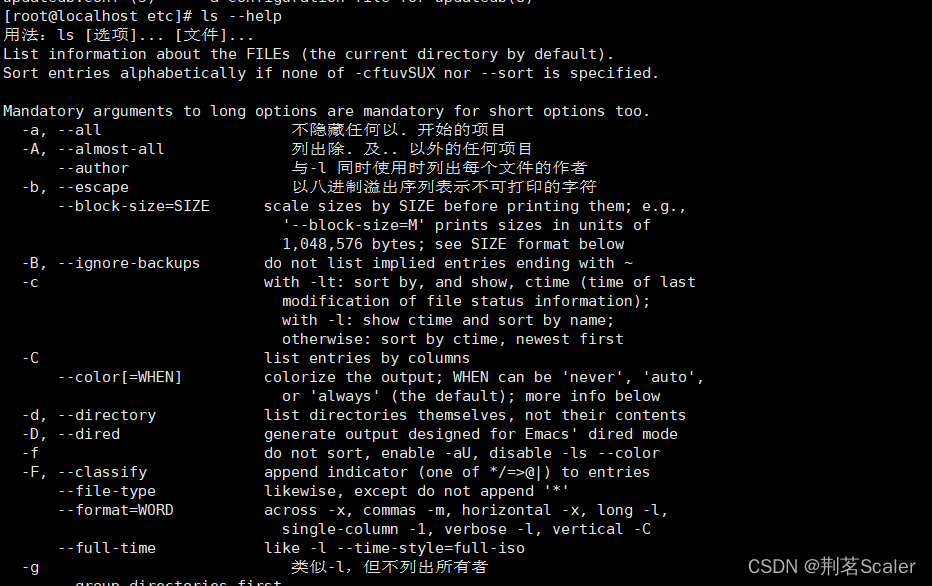 man ls: 查看ls命令的帮助信息。通过man查询出命令帮助文档,一般主要是看name中的描述这个命令是干什么用的。还可以通过 / 定位到某一个选项的作用是干什么的。