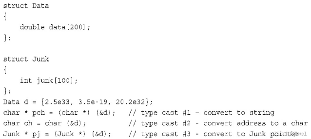 首先,上述3种类型转换中,哪一种有意义?除非不讲理,否则它们中没有一个是有意义的。其次,这3种类型转换中哪种是允许的呢? 在C语言中都是允许的(黑体字是原话)