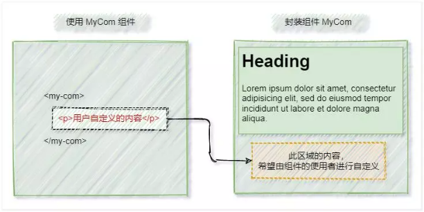 在封装组件时,可以使用<slot>元素把不确定的、希望由用户指定的部分定义为插槽;插槽可以理解为给预留的内容提供占位符。