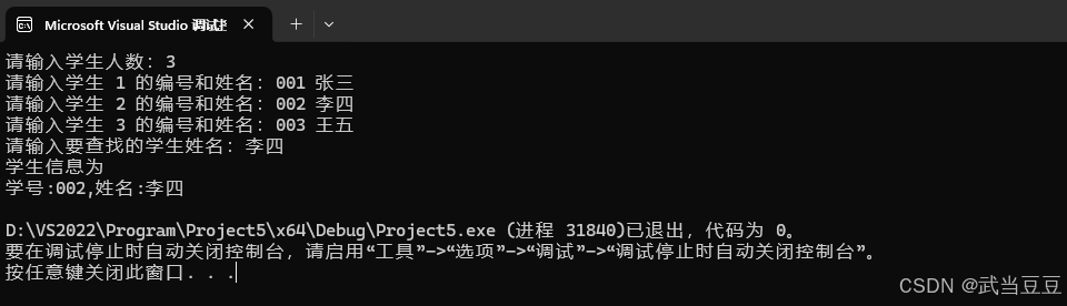 cout << "请输入学生 "<<i+1<<" 的编号和姓名:";