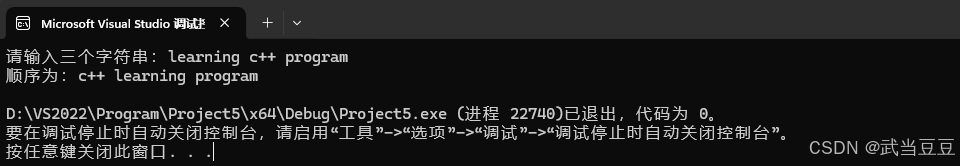 cout << "顺序为:" << str2 << " " << str1 << " " << str3 << endl;
