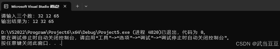 cout << "输出结果为:" << a <<" " << b<<" " << c << endl;