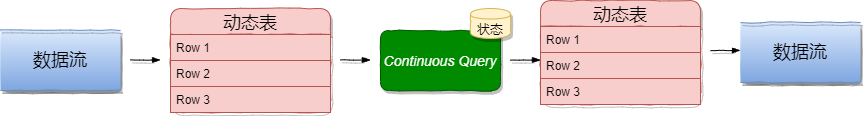关于流、动态表与Continuous Query之间的关系,如下图所示: