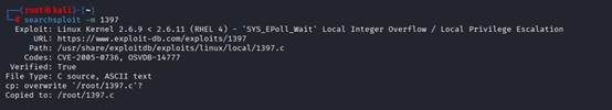 CVE-2005-0736 (epoll_wait 整数溢出) → Exploit-DB ID: 1397
