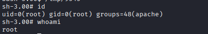 我们接着输入id 和whoami 来确认是否为root权限,经过上图可以看出我们已经提权成功