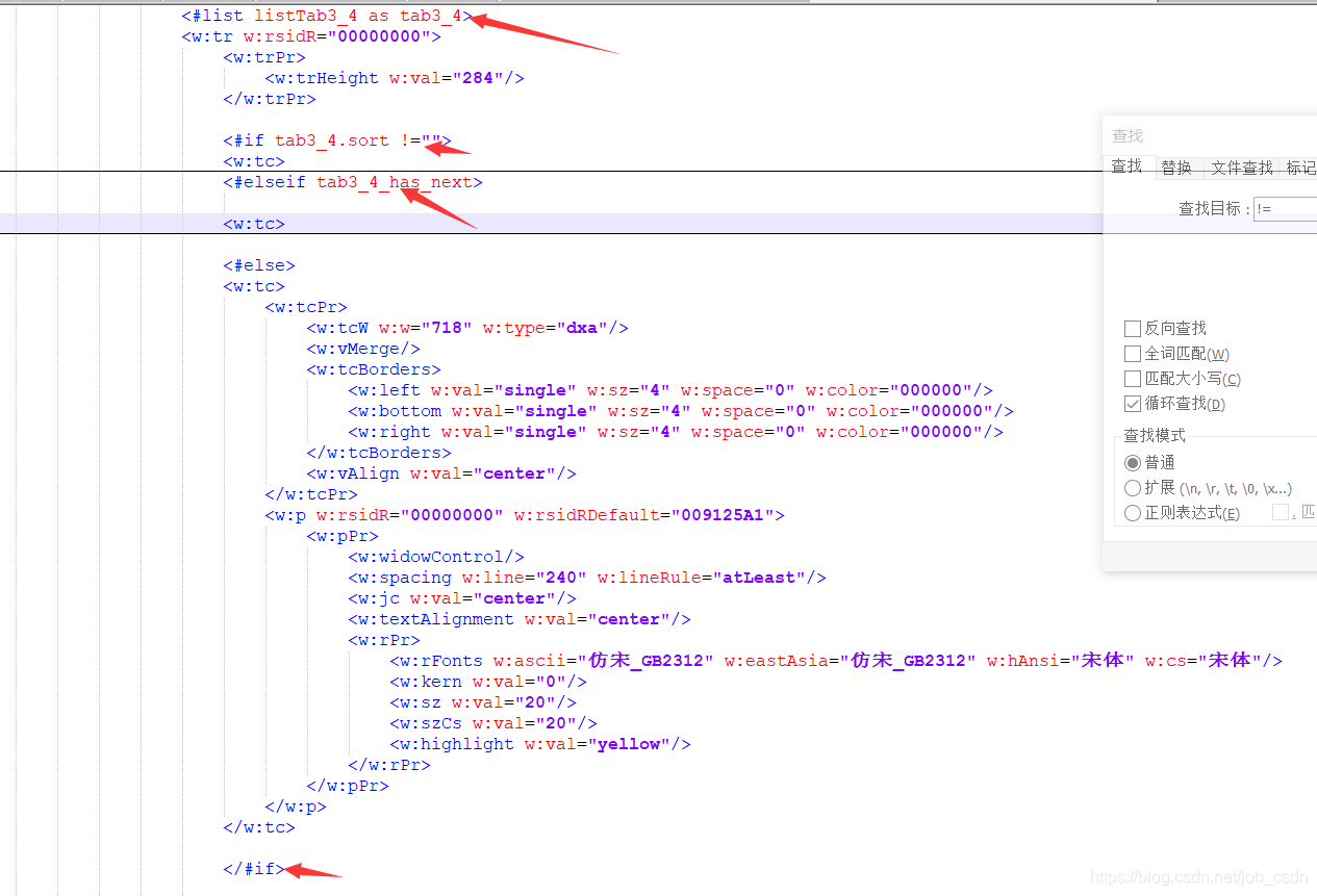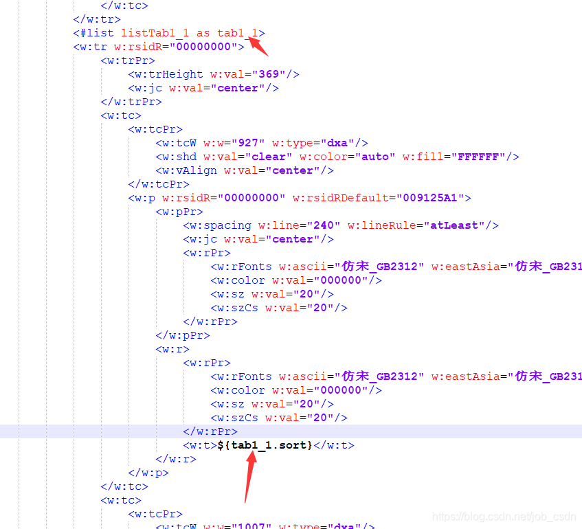 <w:tr>为表格的行,w:t为一个单元格。<w:t>处为单元格的值,<w:tcw >为单元格长度