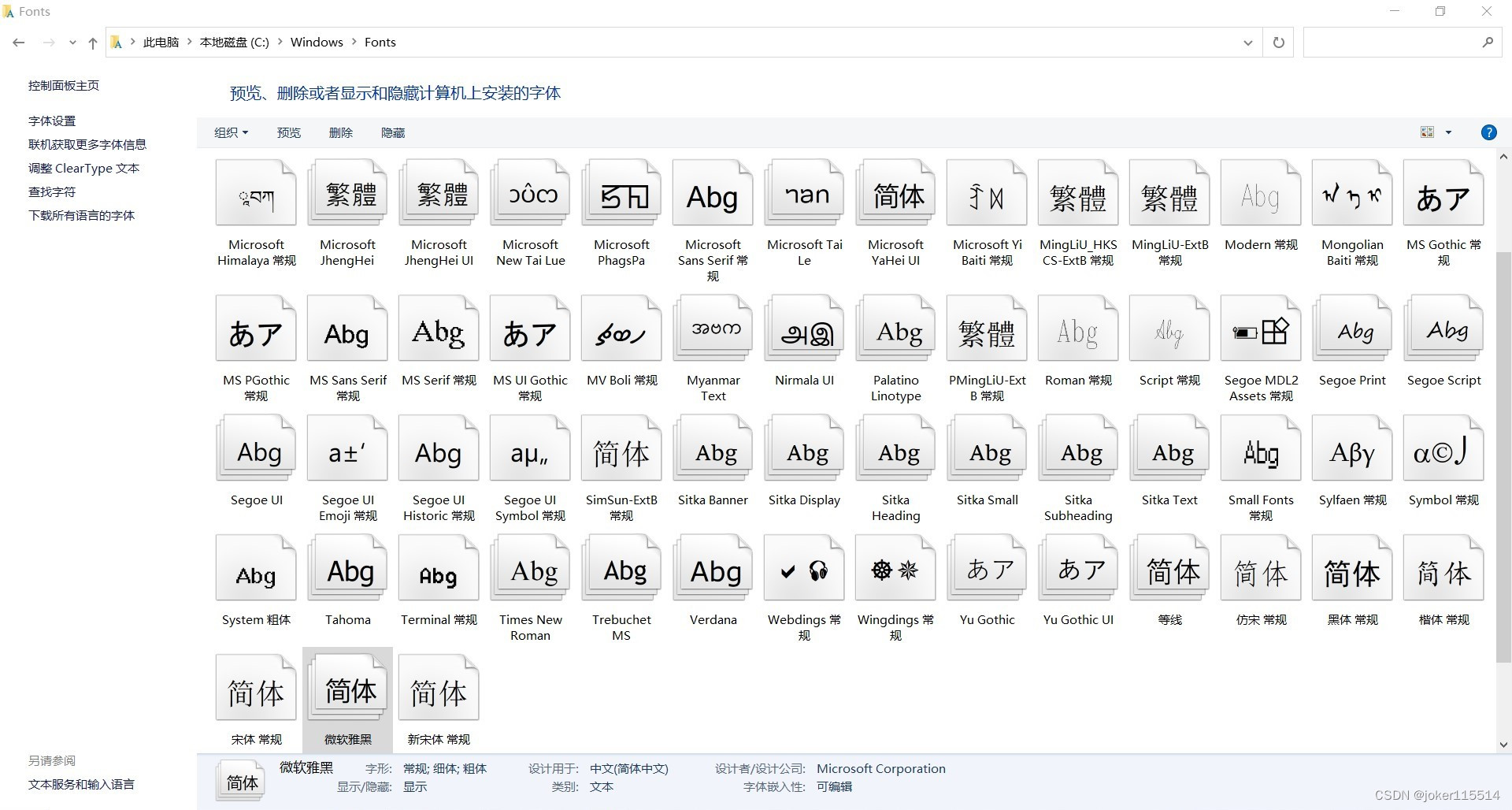 首先在C:\Windows\Fonts中找到我们要的字体资源