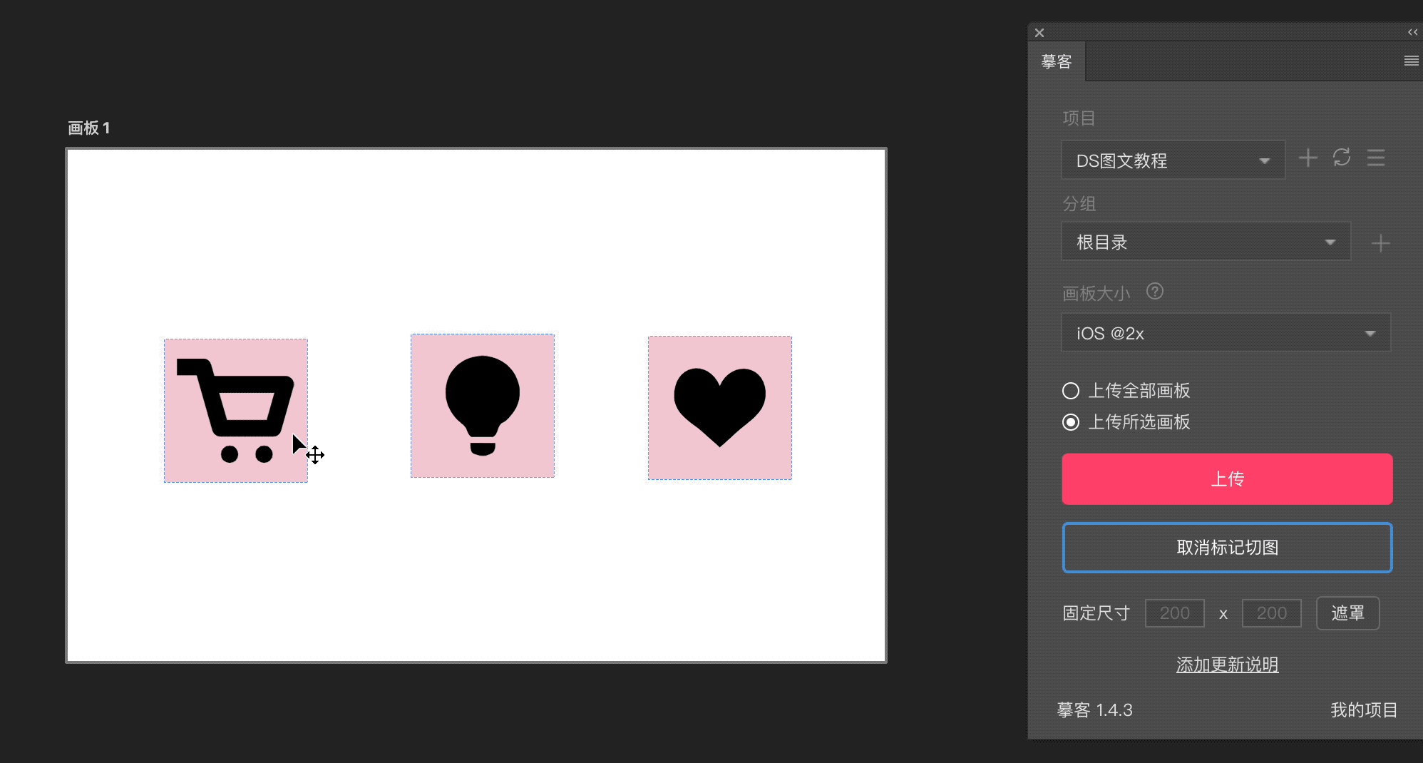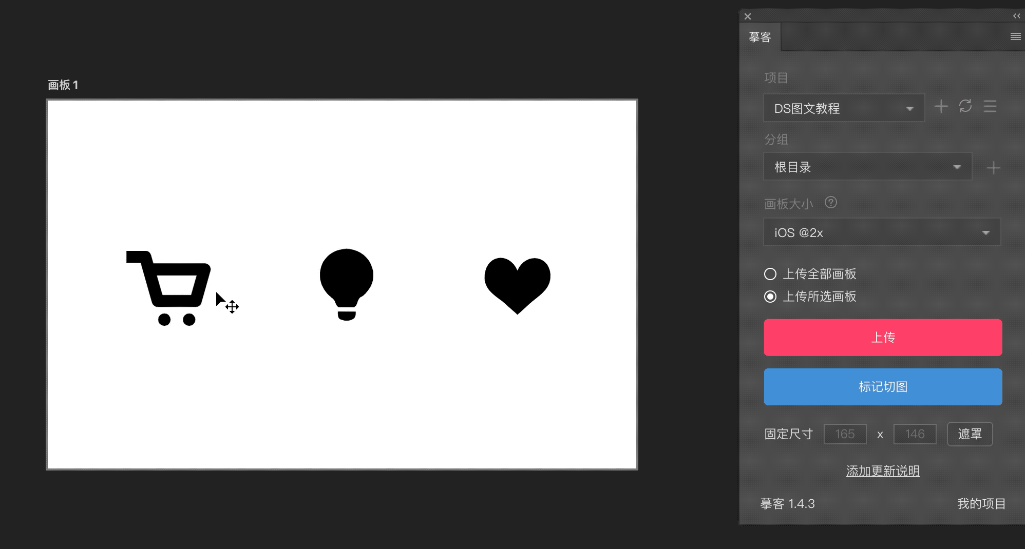 摹客PS插件新增自定切图尺寸功能,解决设计师切图难题,快速统一图标尺寸,支持不同倍率切图下载。