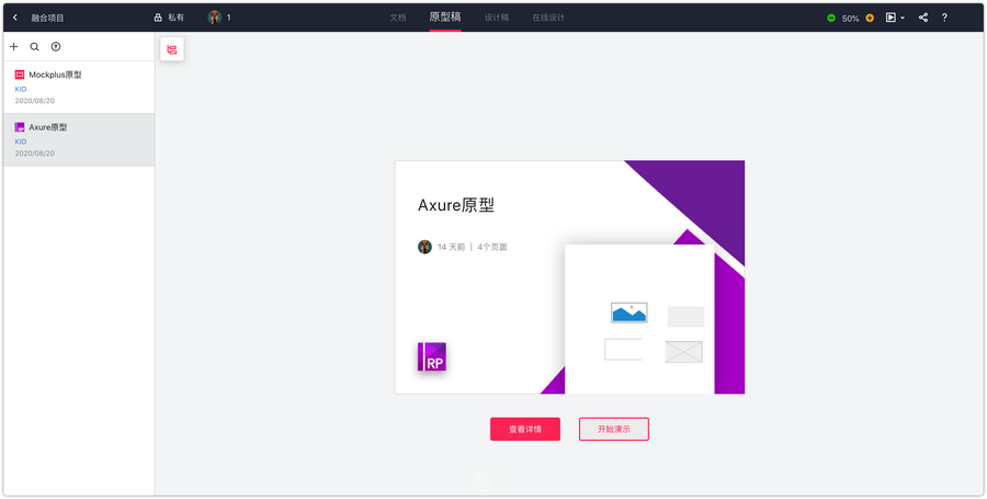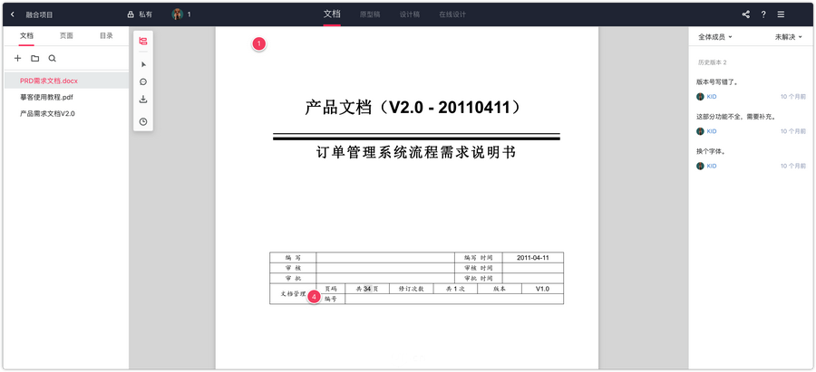 在一个项目中就能同时查看需求文档、原型和高保真设计!