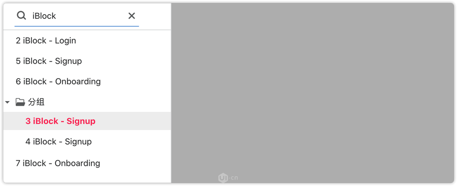 有的小伙伴的设计页面非常多,演示的时候想查看某个页面时找起来很麻烦。因此,我们在演示页面也为大家提供了一个搜索功能,方便快速找到目标页面。