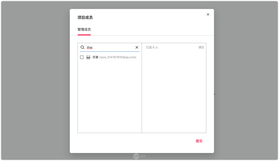 同时,在项目内添加成员可以使用拼音或邮箱,快速搜索出目标成员。