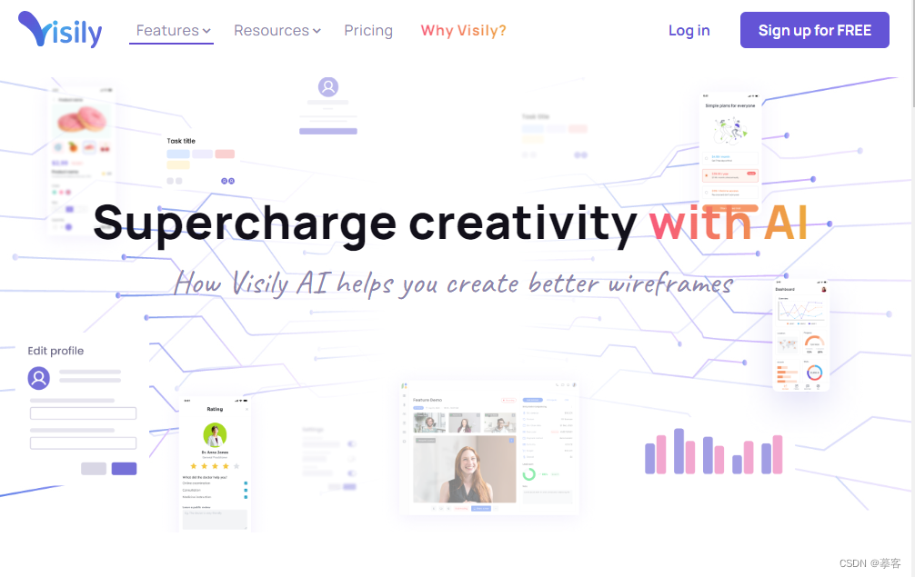 1) 截图设计转换:只需将你想要使用的设计方案截图,上传至Visily,AI即可生成截图的网页和应用程序界面;