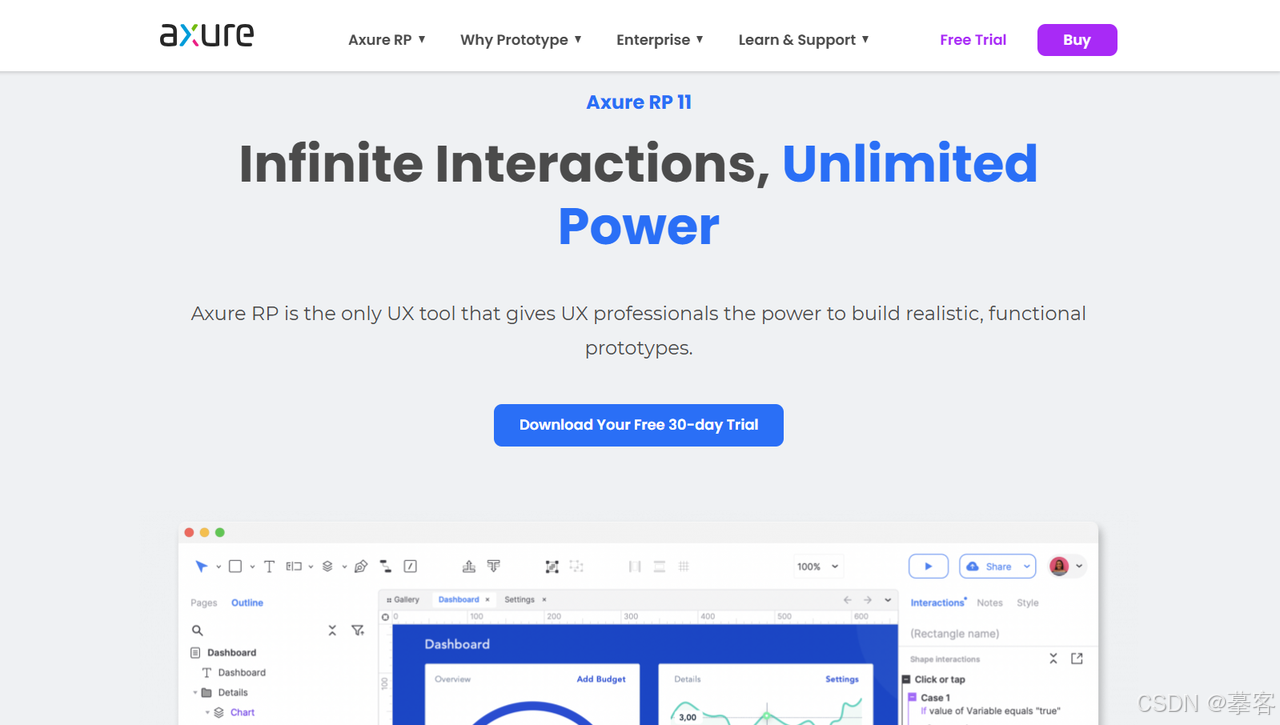Axure RP 是经典的原型设计工具之一,支持离线运行,适合产品经理和设计师制作高保真原型。它不仅能绘制界面布局,还能添加丰富的交互逻辑,是众多企业团队的首选原型工具。