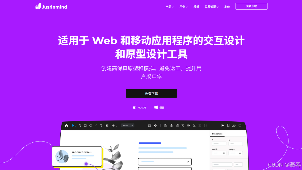 Justinmind 是一款功能强大的原型设计工具,支持 Windows 和 macOS 系统,适用于创建高保真原型和交互设计,也支持企业客户离线使用。