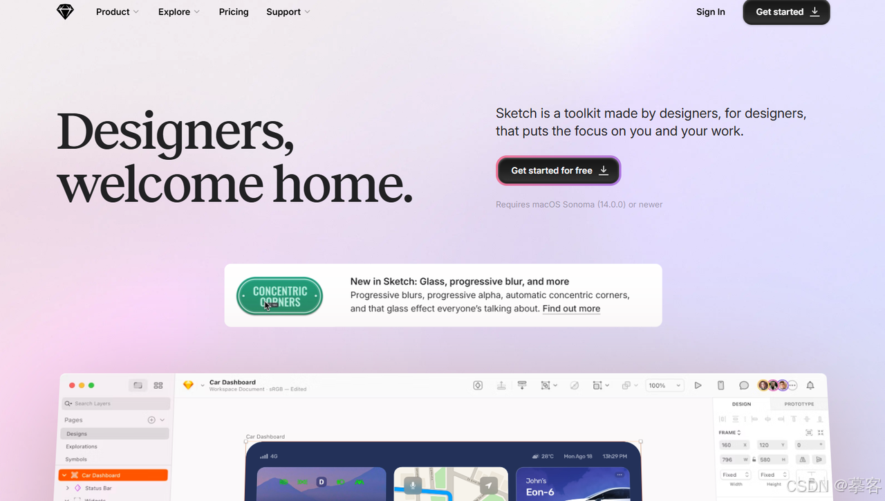 Sketch 是 macOS 平台上经典的界面设计和原型工具,支持离线使用,它以轻量化、易上手和插件丰富著称,适合个人设计师及中小型团队进行高保真原型绘制和 UI 设计。