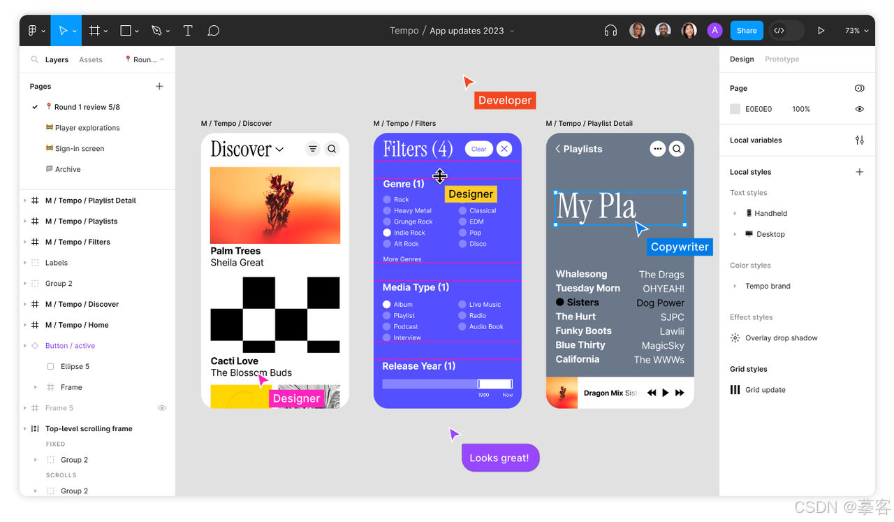 Figma是全球最流行的设计工具之一,上手相对简单,适合新手从0开始学习。此外,它的跨平台、团队协作体验也不错,多人可以同时在同一个画板上操作,修改实时可见,沟通效率极高。