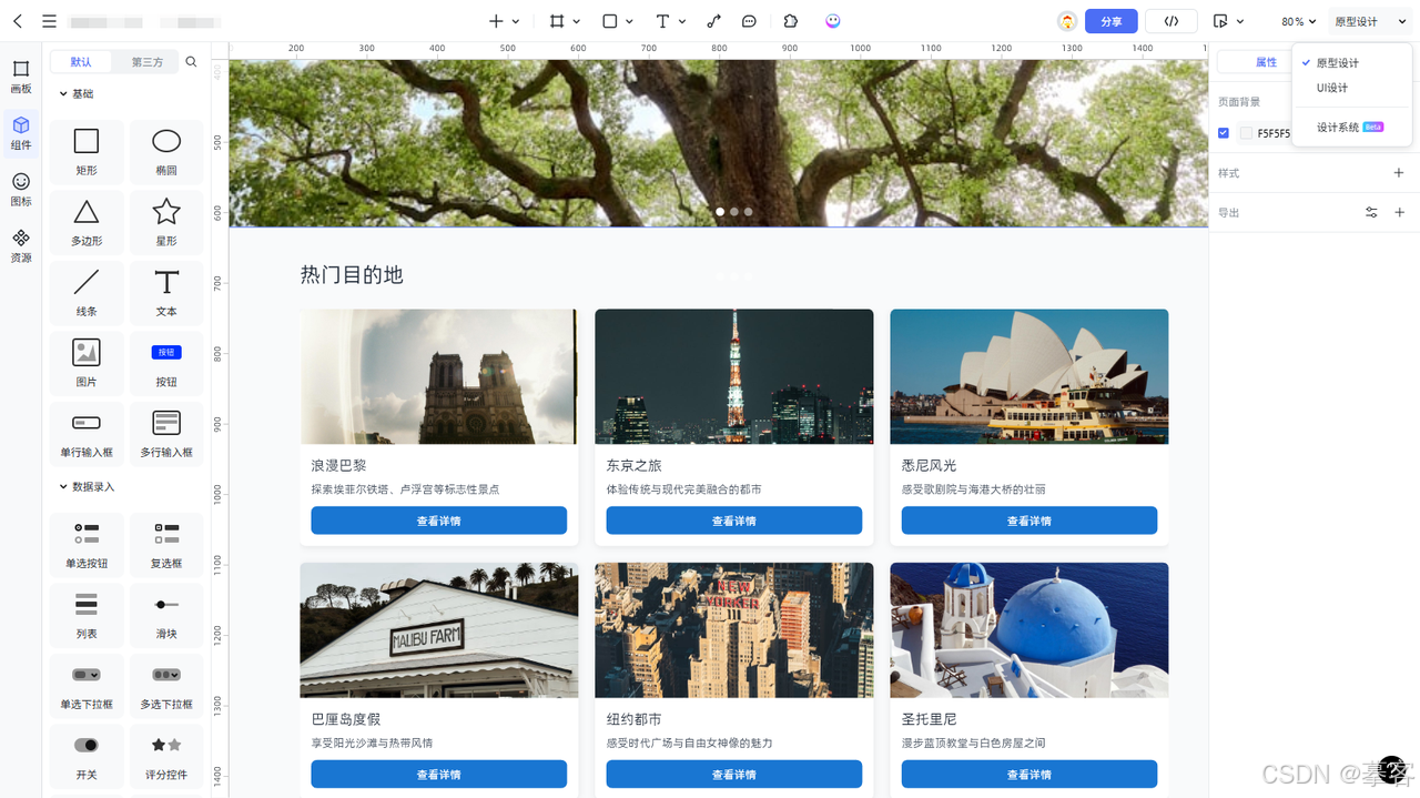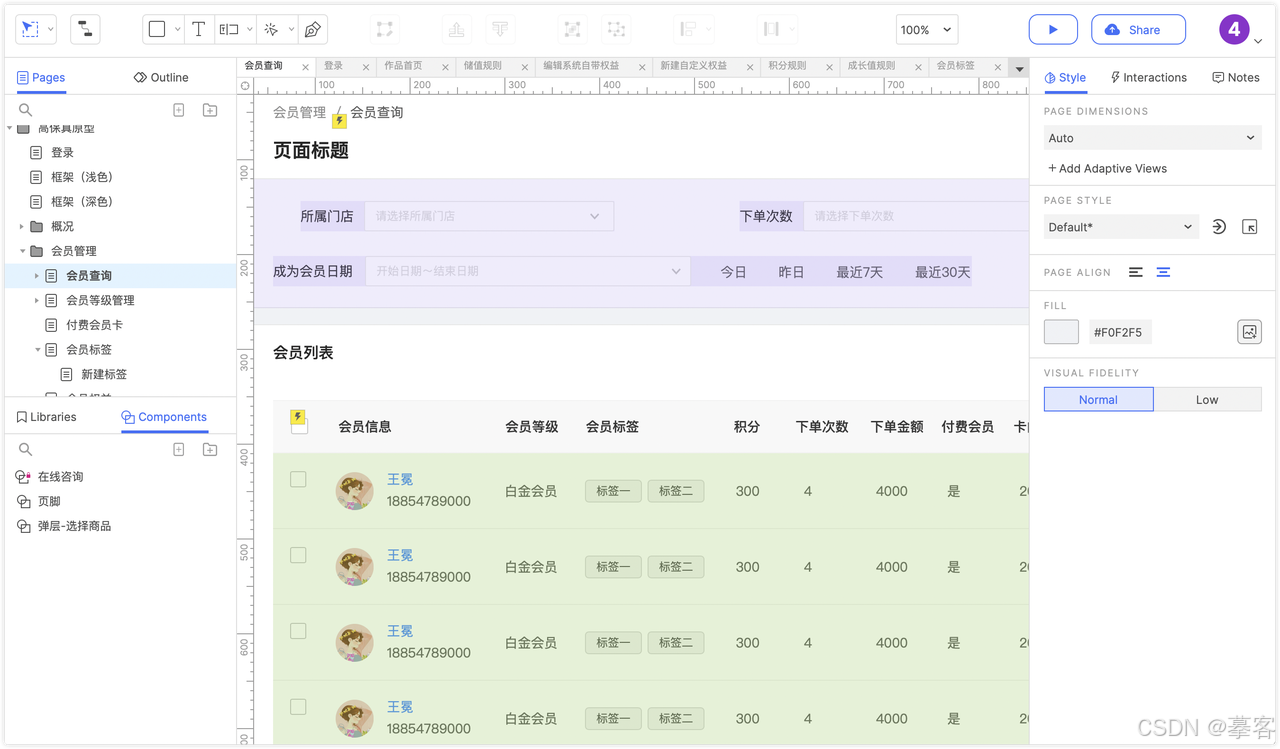 原型设计:支持高保真原型绘制,具备丰富完善的交互能力;