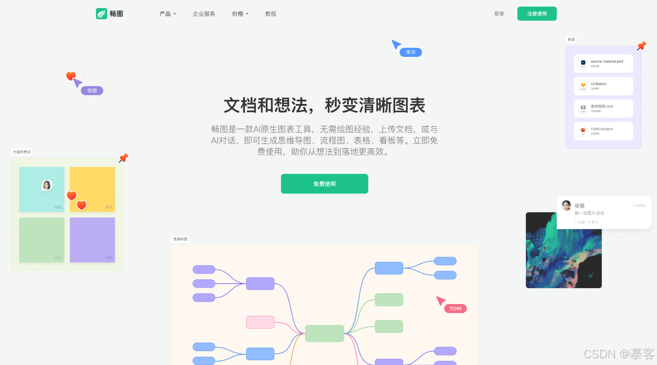 畅图一款AI原生思维导图工具,操作简单,擅长将对话智能生成思维导图、流程图或其他视觉内容。它还支持AI连续对话,进一步修改图表。对产品经理来说,无论是笔记总结、日程安排、项目管理,还是头脑风暴、框架梳理、内容演示等,畅图都能帮到你。