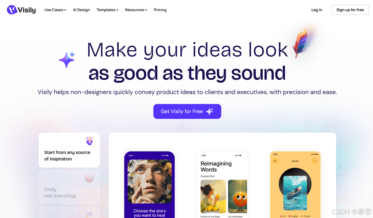 Visily AI强调设计优化与智能辅助,它同样支持基于文本生成原型,同时还可以调整布局、优化排版、提供配色建议等,使生成的界面更加符合设计规范。值得一提是,Visily AI内置了丰富的模板和示例,能够帮助非设计背景的用户快速上手,降低原型设计门槛。在应用场景上,它不仅适用于快速构建原型,还能作为设计规范的辅助工具,帮助团队在早期阶段建立一致的界面风格。