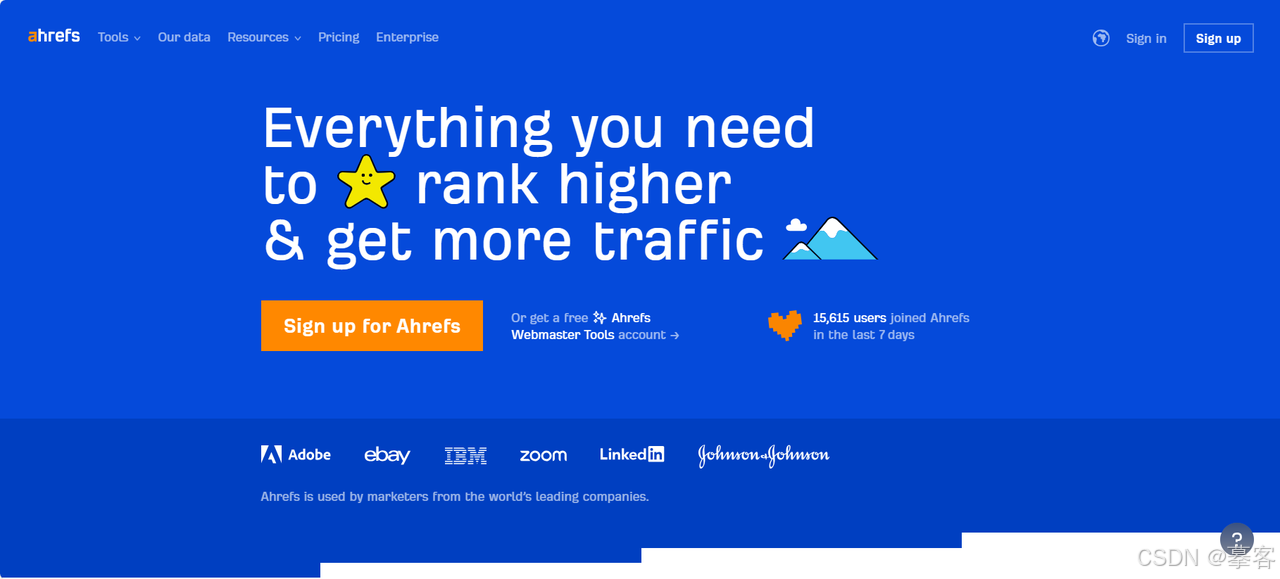Ahrefs一款搜索引擎优化软件工具,功能包含链接建设,关键词研究,竞争对手分析,排名跟踪和网站审计等。产品经理可以通过Ahrefs了解竞品的SEO策略,分析关键词排名和链接状况。
