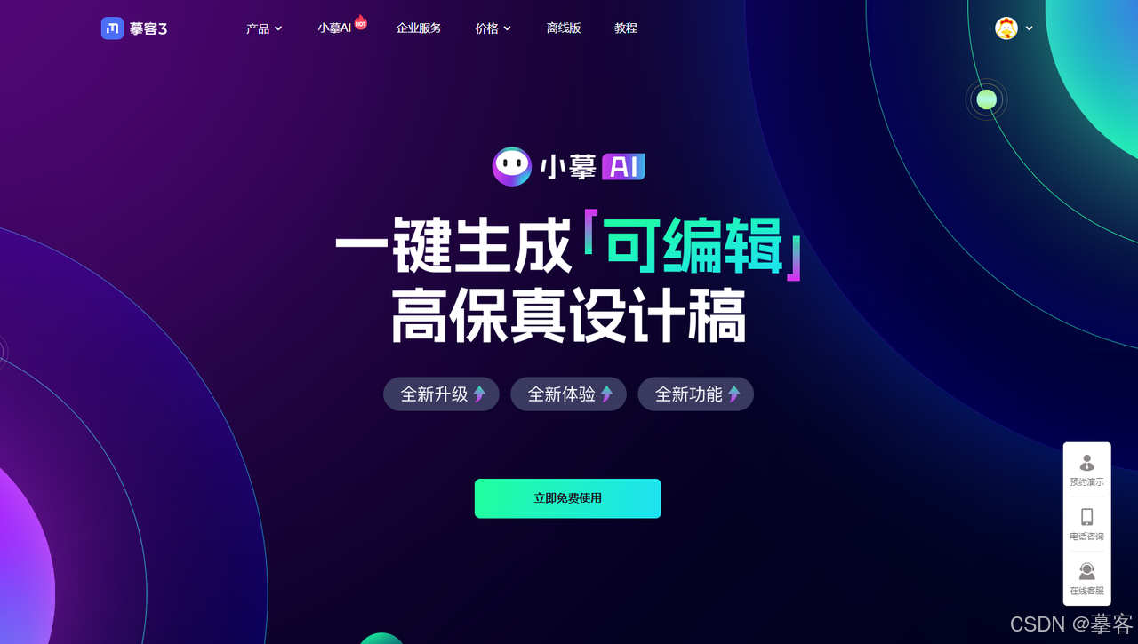 小摹AI是摹客3中内置的AI设计工具,可以根据用户描述,一键生成结构清晰、可编辑的多页高保真设计稿,即使不懂设计,你也能轻松搞定从产品结构到 UI 落地交付全流程,大幅提升了原型设计效率!