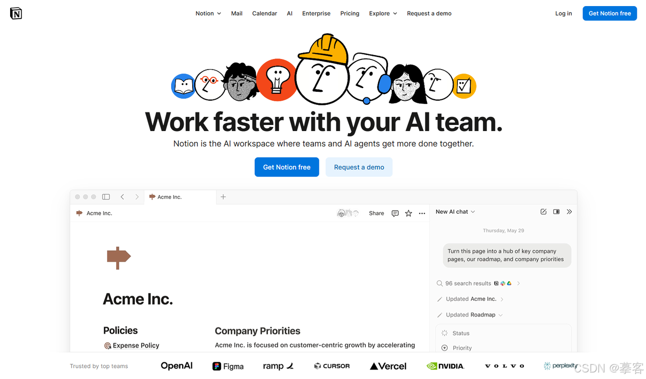 Notion 是一款全球流行的全能型工作空间工具,集文档、任务管理、知识库和数据库于一体。它最大的特点是灵活性:用户可以自由组合模块,构建适合自己的工作流。对于产品经理来说,Notion不仅能记录需求文档,还能搭建项目管理看板、设计组件库或团队知识库。