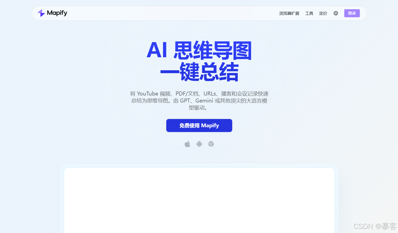 Mapify是一款专注于思维导图和组织信息的AI工具,它可以通过与AI对话,快速创建和完善思维导图,同时它还支持多人在线协作,共同编辑和分享思维导图,这些功能大大提升了产品经理的工作效率。