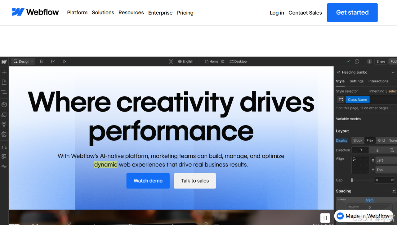 1)可视化CSS编辑器,你可以直接在界面上调整元素的样式,比如边距、颜色、字体、定位等,而Webflow会实时生成对应的CSS代码。这对于想要学习前端开发的设计师来说非常友好,你可以一边设计一边学习CSS的工作原理。