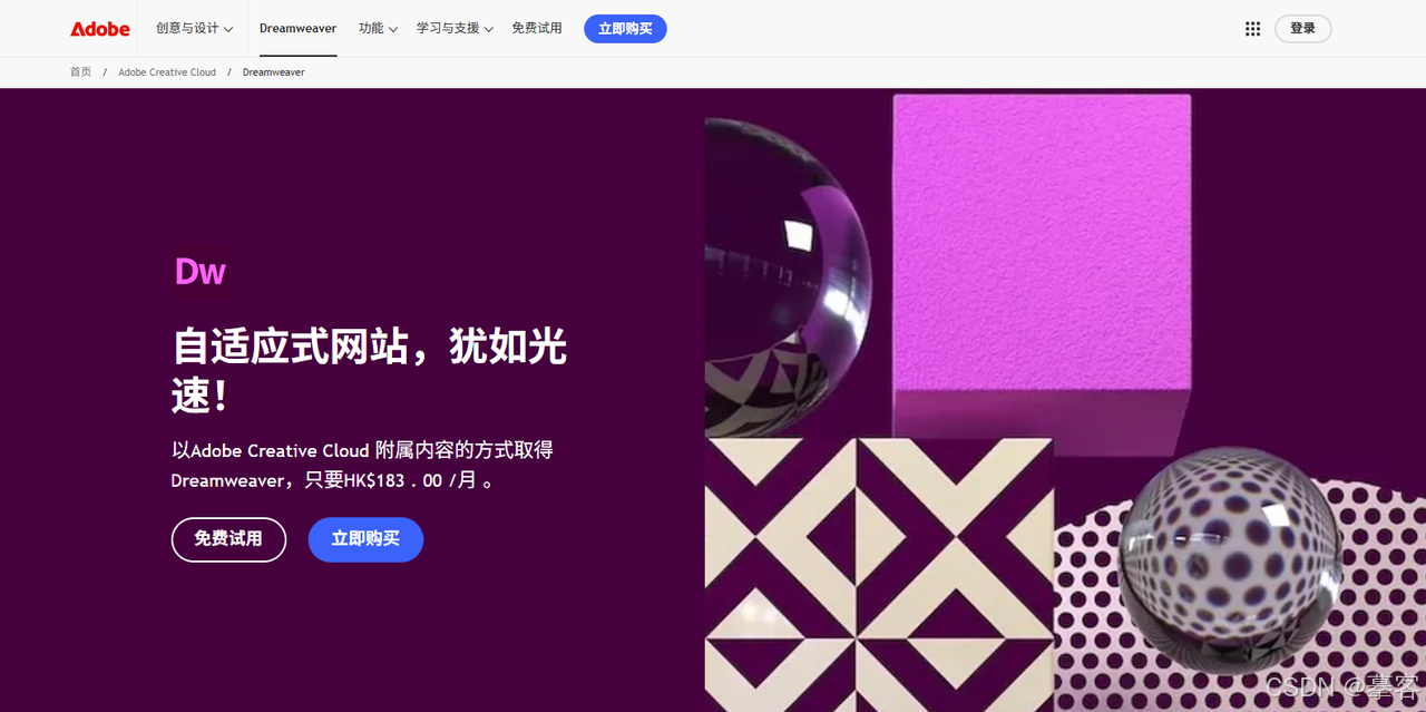 Dreamweaver是Adobe公司推出的专业级网页开发工具,它在网页制作领域已经有超过20年的历史,是很多专业前端开发人员的首选工具。