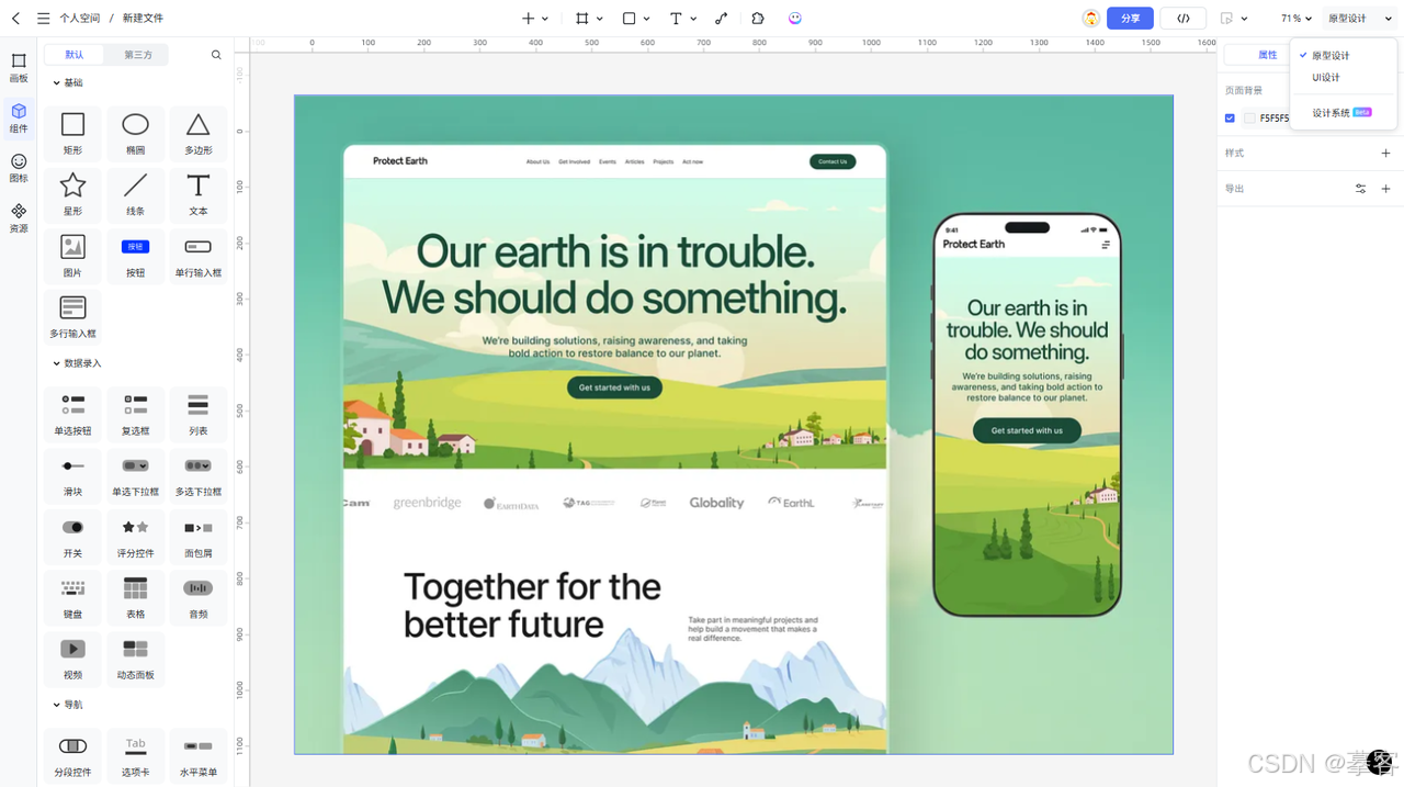 UI模式专注精细的高保真界面设计,提供了专业强大的矢量设计能力、丰富的样式资源,你想要的界面效果,摹客3都能实现。