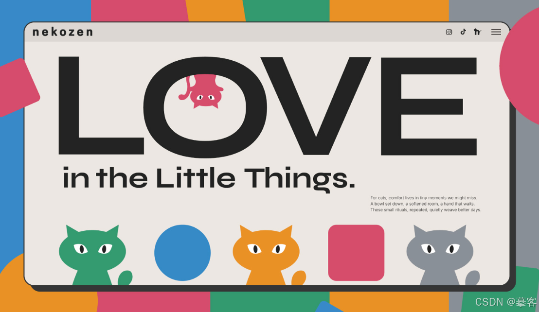 运用这种网页设计,最终呈现的效果保留了些许瑕疵,但这种美学温暖、真实、富有表现力,且极具人性化,在人AI时代,彰显了设计师的匠心独运。