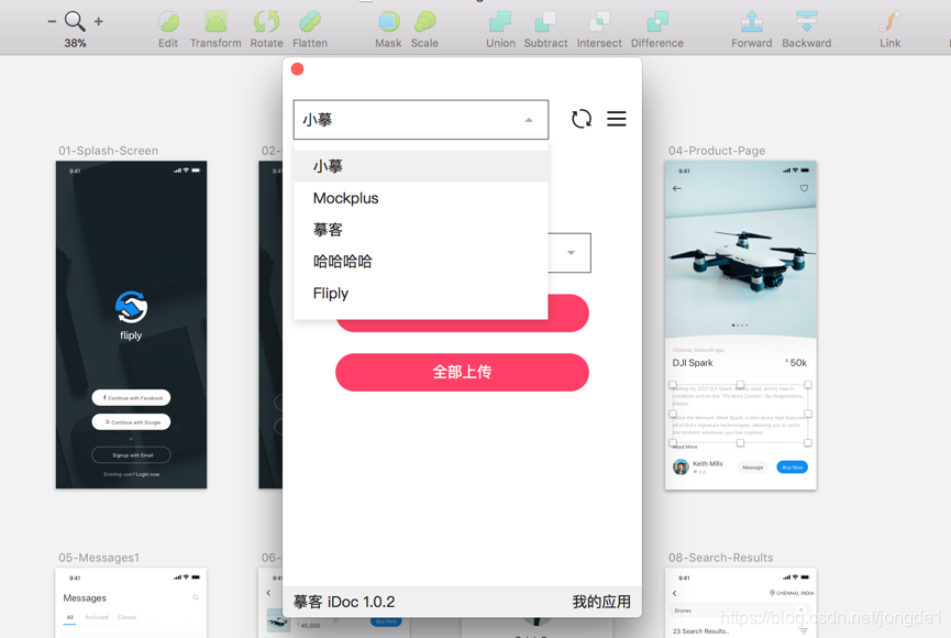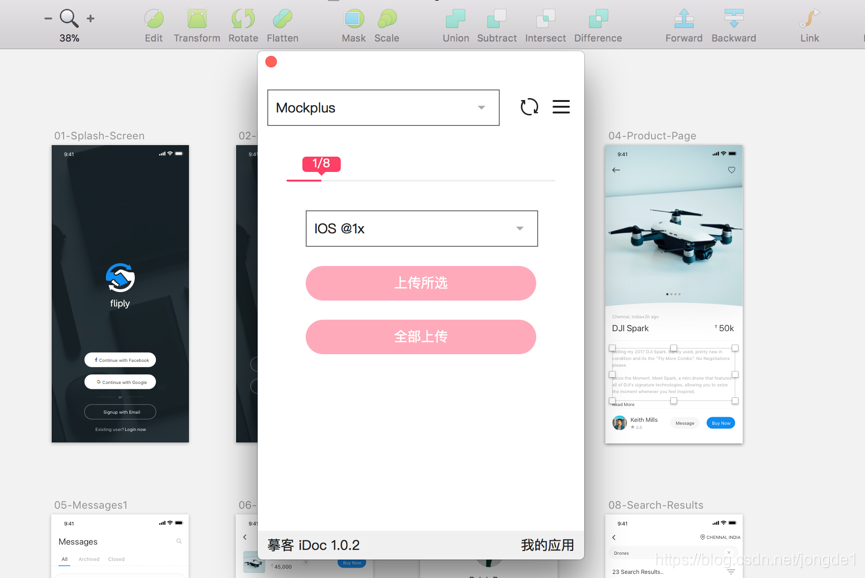 点击上传所选或全部上传便会将设计稿资源一键上传至iDoc,设计师和开发便可登录摹客iDoc查看标注与下载切图等。