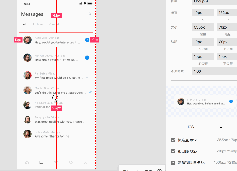 设计稿太多太杂乱,标注看不清?别担心,iDoc中支持放大镜功能,局部放大标注信息,而且还可以随意曾大倍数,这个功能是不是很贴心呢?
