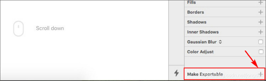 Sketch插件中选中需要切图的图层或编组,点击Sketch 右下角的Make Exportable右侧的加号便可完成切图标记,无需再设置多种切图倍率,iDoc将自动生成不同倍率的切图。