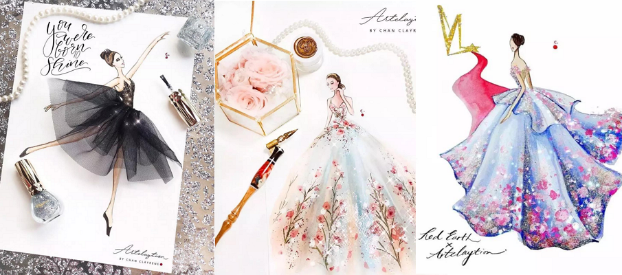 一位用指甲油画出世上最美的裙子,勾勒出每个女孩心中的公主梦的插画师。