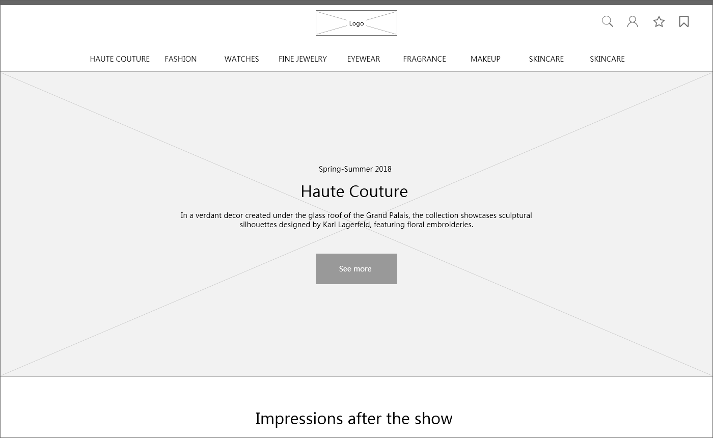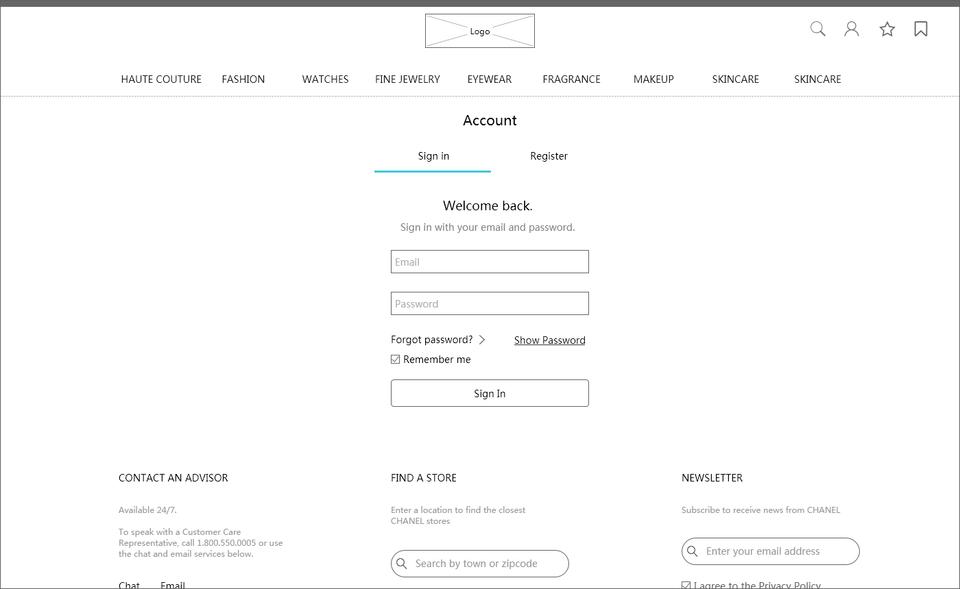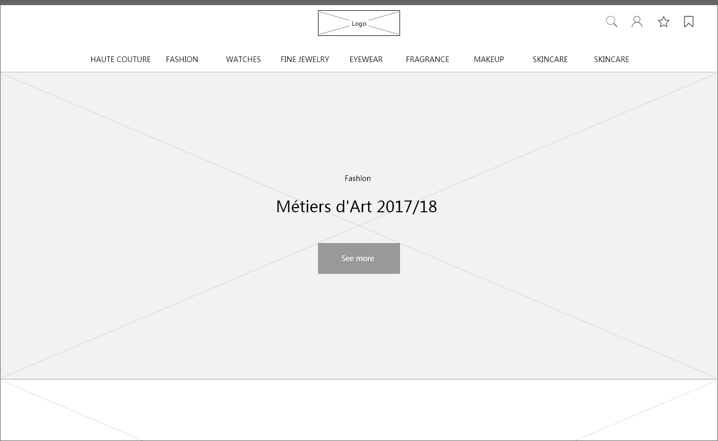 CHANEL是知名的女性奢侈品品牌,网站原型以大图排版为主,配色方面也是采用经典的黑白灰,