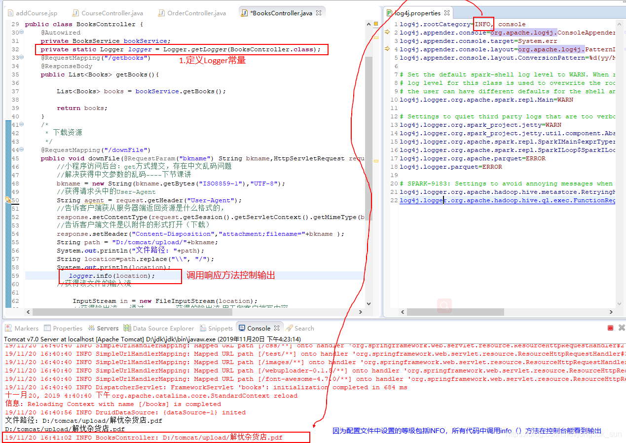 ps:tomcat是以服务的形式存在的环境中开发web项目,向控制台输出的信息(system.out)也会存在服务名-stdout.日期.log日志文件中,为避免过多的控制台输出信息=》平时开发的时候用log4进行输出想要在控制台打印的信息