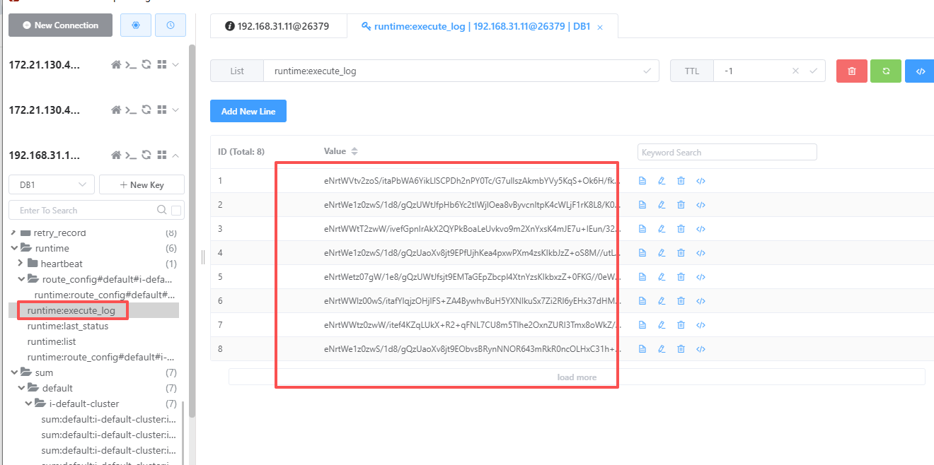 1.当调用产生后,在Server上产生调用记录数据,并存放到redis的key中,key值为runtime:execute_log