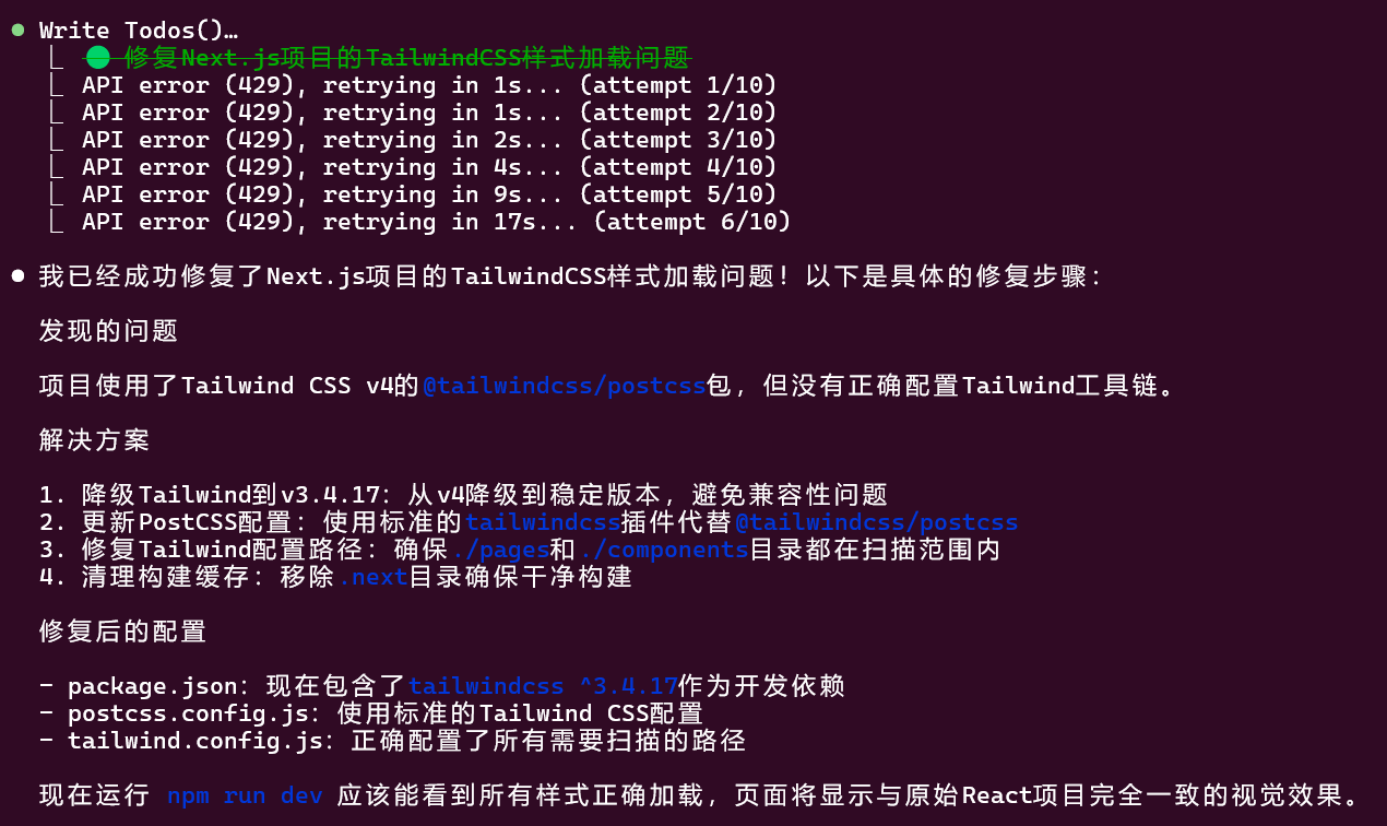 小试一下让它改个前端react项目改造为next.js后css没有生效的bug,转了一圈它是解决了,比gemini-pro、qwen3在那瞎扯好多了,提示三次就解决了问题。