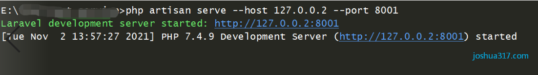php artisan serve --host 127.0.0.2 --port 8001