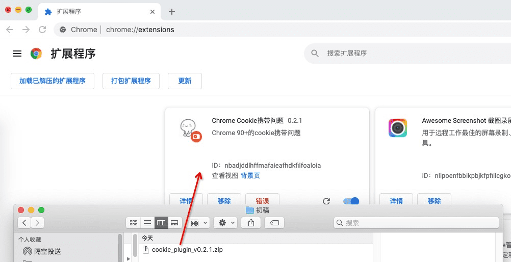 - 将下载的zip插件拖拽进去