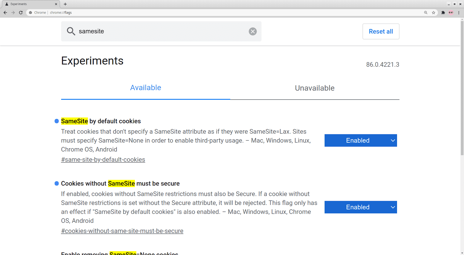 2021年9月,已经彻底移除可视化禁用和命令行禁用的方式,详见官方的SameSite Updates。