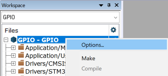 右击工程选择Options(或者Project > Options)打开工程选项配置: