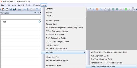 打开IAR EWARM,Help > Migration > Keil μVision Migration Guide打开对应的说明文档: